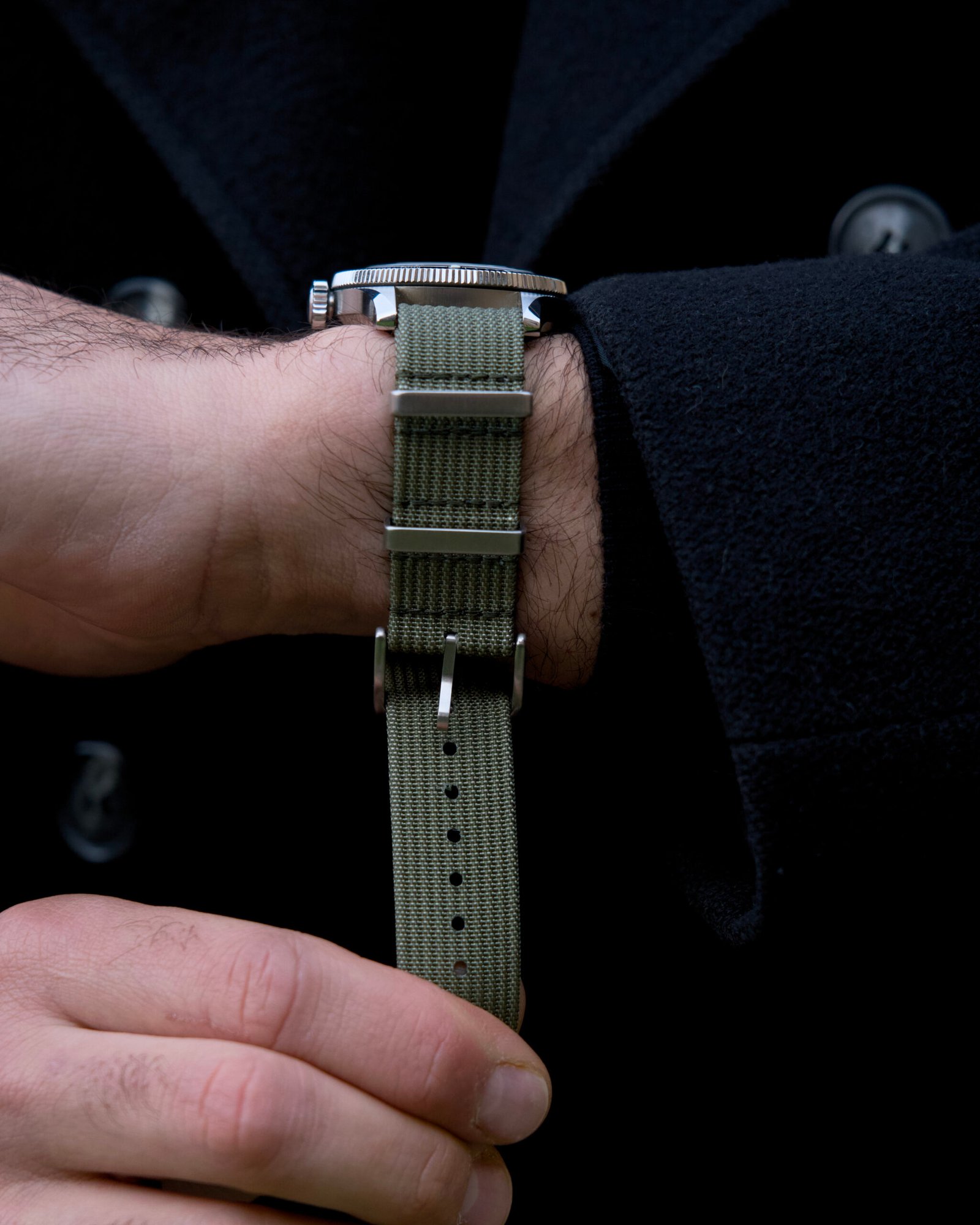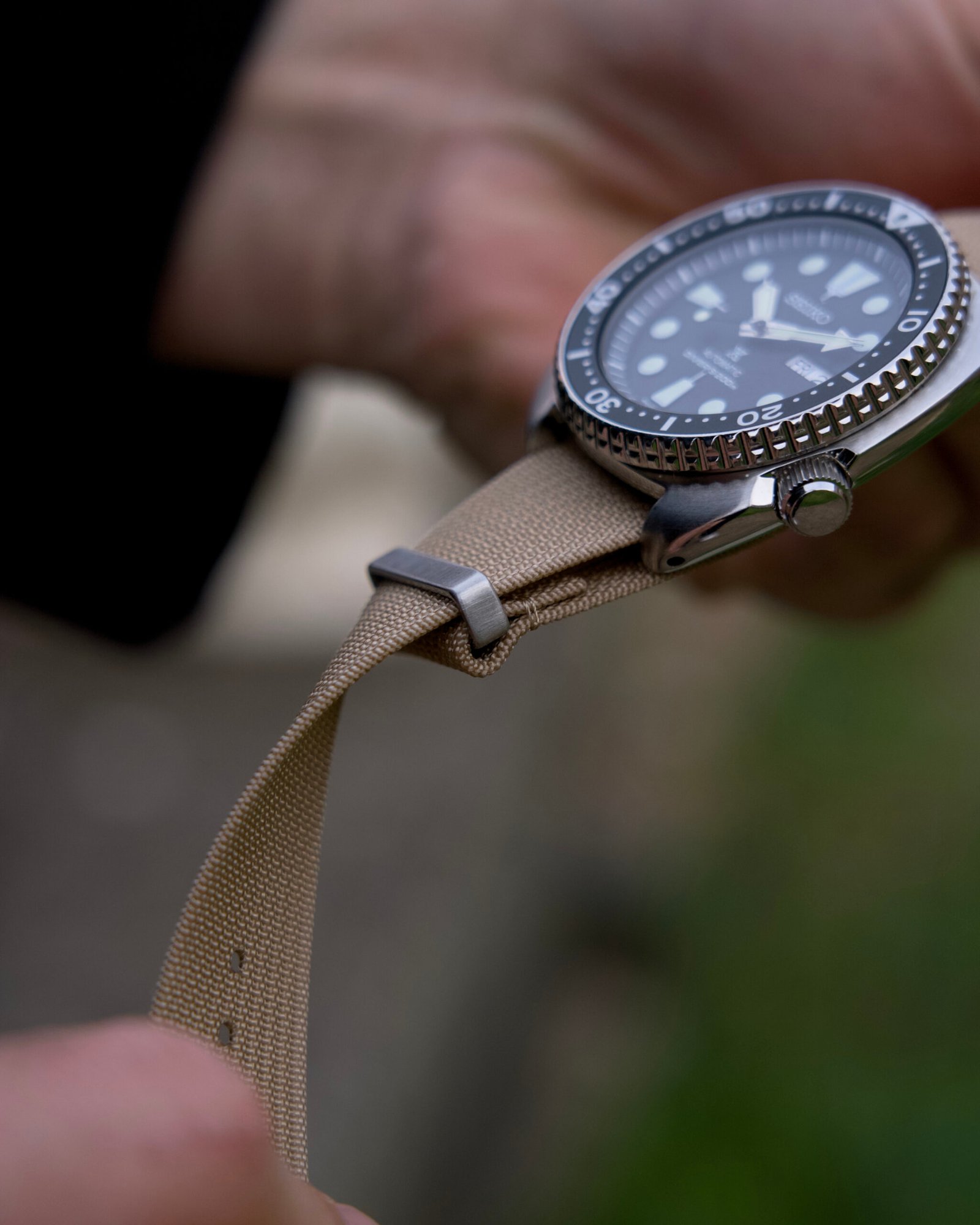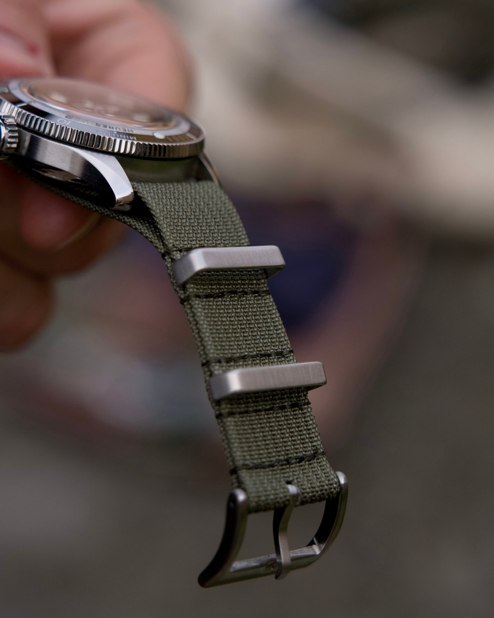 Caldo, versatile e intramontabile. Il Cinturino in Nylon “London” Khaki trasporta la mente verso paesaggi sabbiosi e avventure sotto il sole. È una tonalità più morbida e “terrena” rispetto al verde militare, capace di offrire un look casual-chic che non passa mai inosservato. È la scelta perfetta per chi cerca un’alternativa allo stile puramente militare, senza rinunciare a un tocco di storia.